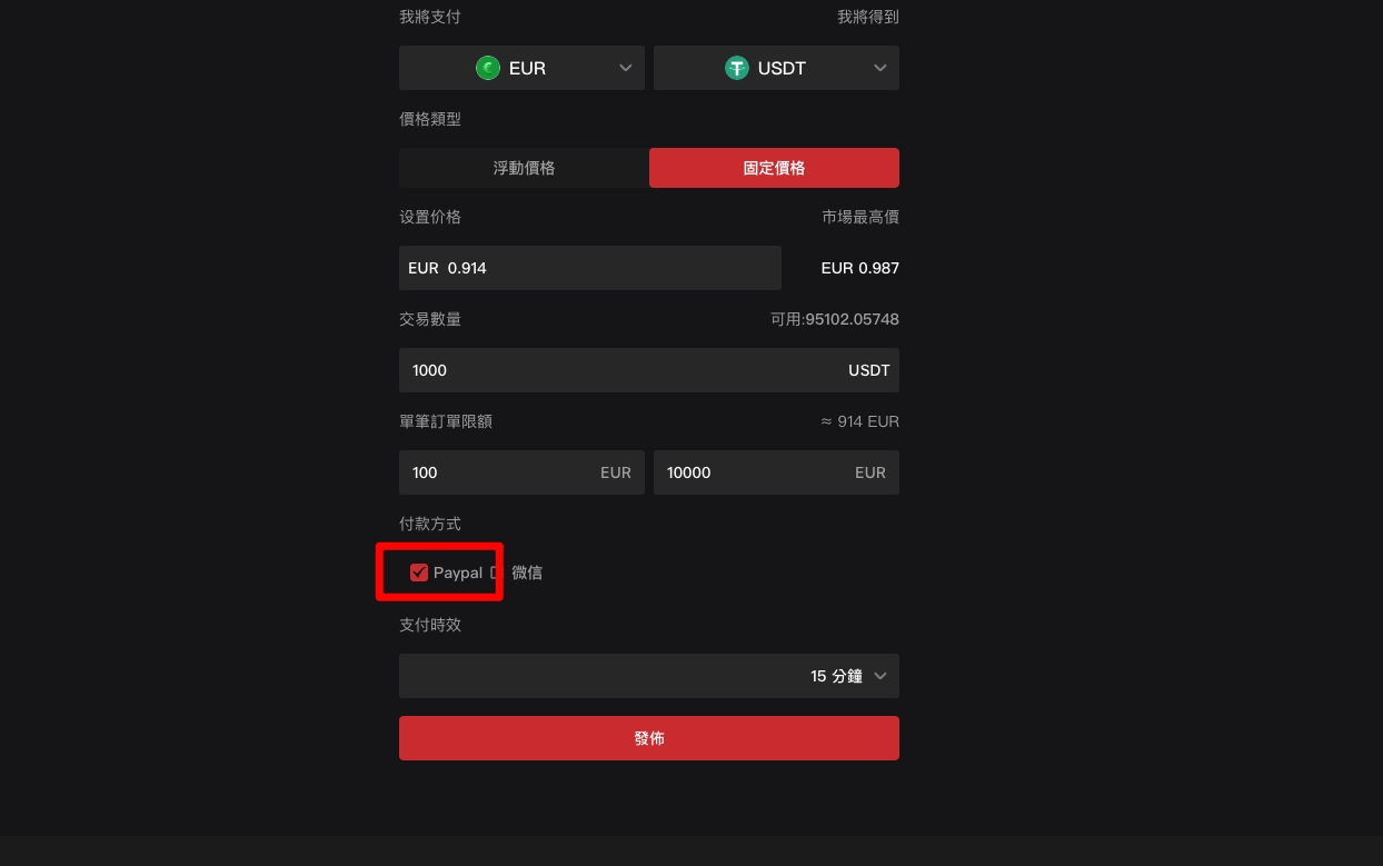 如果選擇【浮動價格】,則需輸入加密貨幣與法幣之間的匯率和浮動價格。 請註意,最終成交價格將根據您設置的浮動匯率或固定匯率計算。