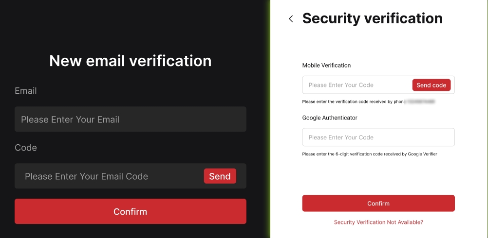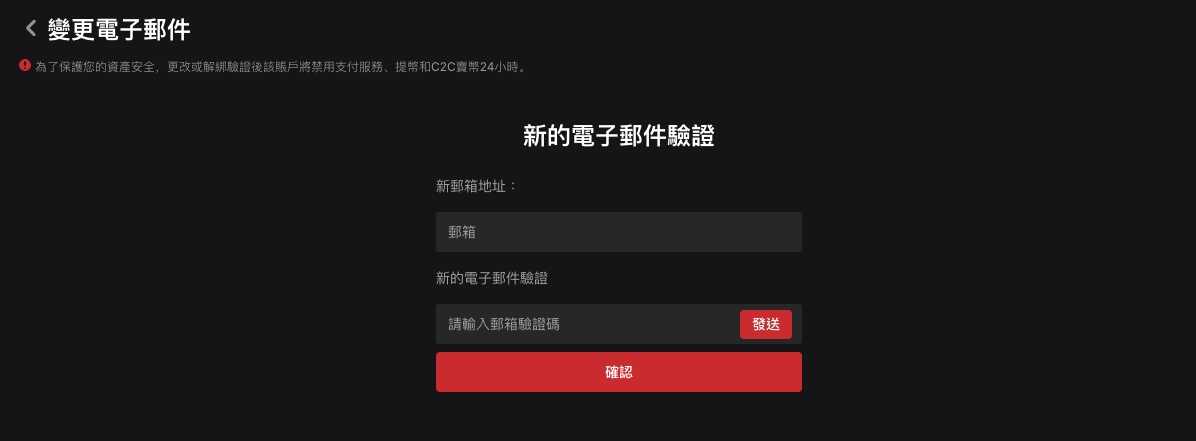 填寫您想要更改的電郵,並獲取驗證碼,點擊「下一步」進行安全驗證,驗證通過後,您的電郵則更改成功。