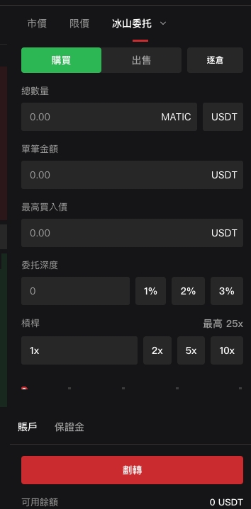 您可以填寫出售的總金額,設置最高買入價以及委托深度後,您的訂單會被分割成較小額訂單。當初始訂單成交後,其他訂單將會逐步執行。