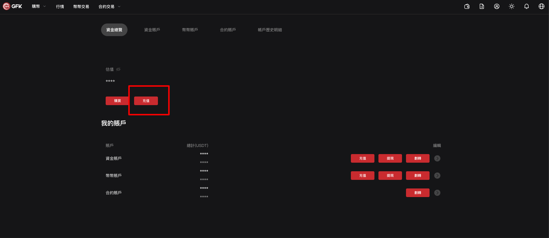 登錄GFK賬號並點擊「資金總覽」。