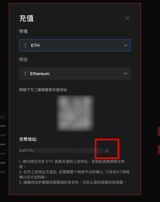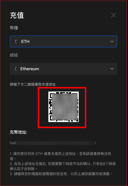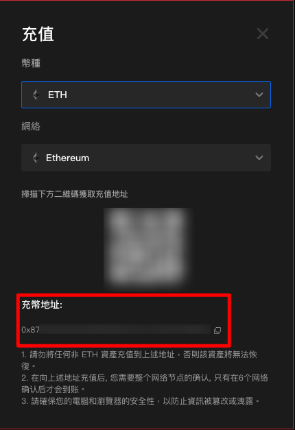 請在繼續操作前仔細確認合約地址。您充值資產的合約地址必須與此處顯示的地址相同,否則您的資產可能會丟失。
